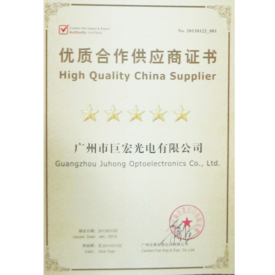 優(yōu)質(zhì)供應商證書